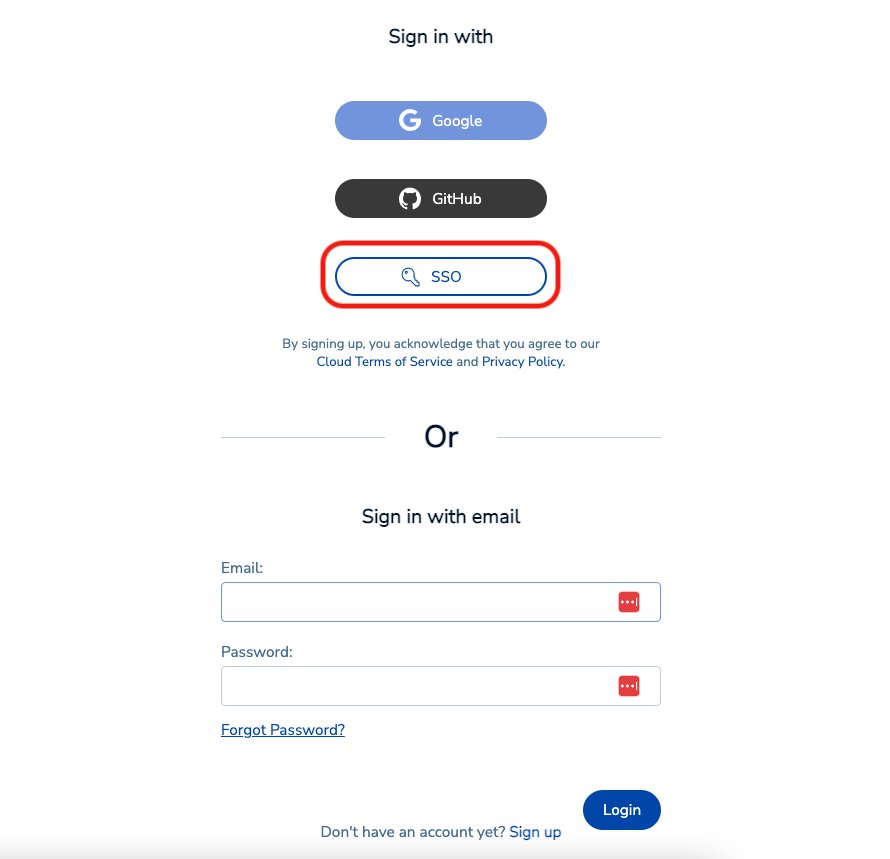 To activate SAML, you must have a local user (or social sign-on user) with the owner role. If you have the correct permissions, you will see the Single Sign-On tab.